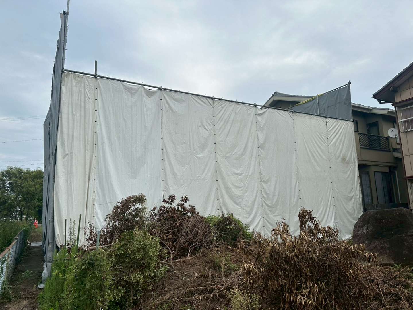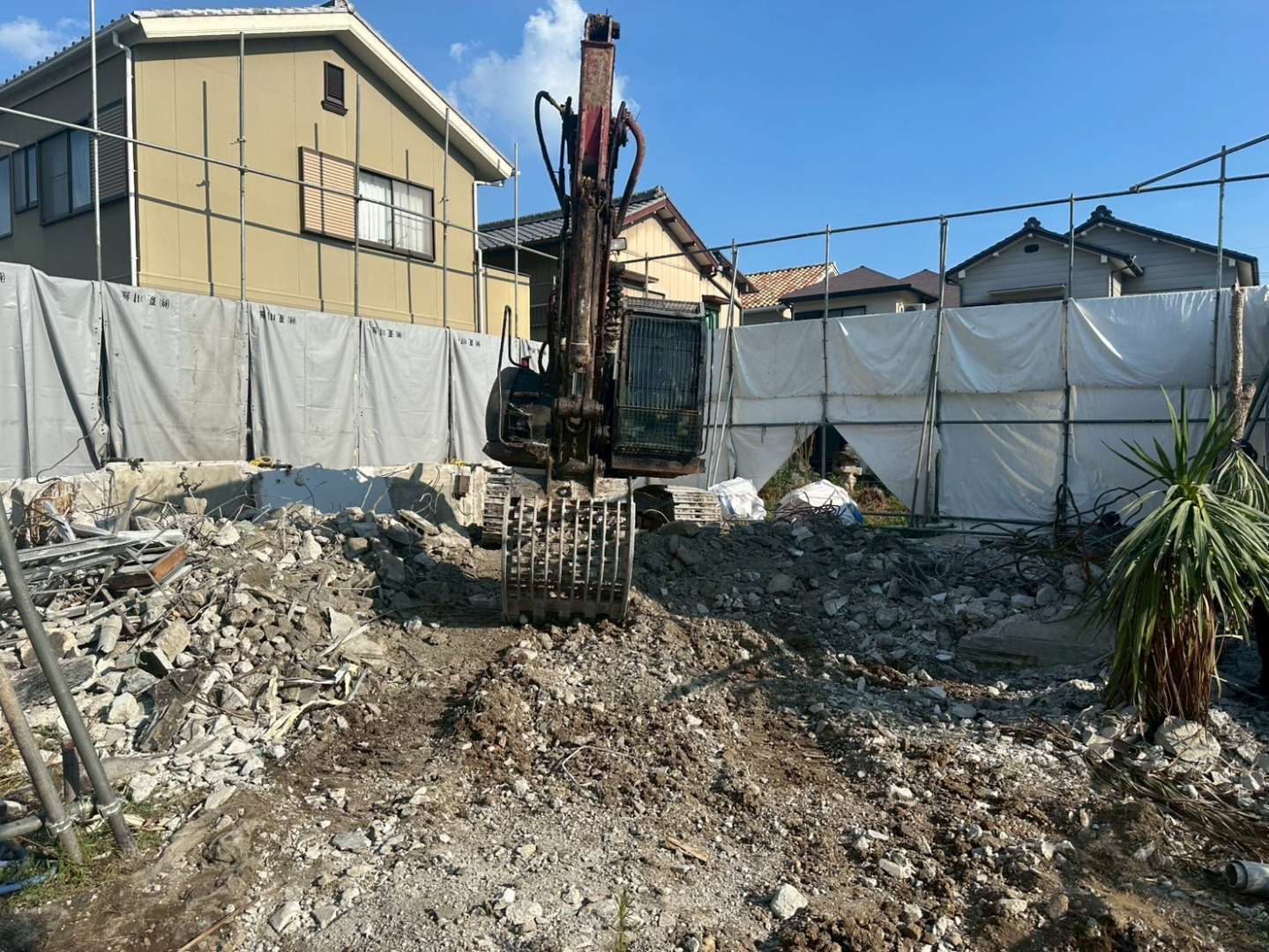 今回の現場は住宅密集地に位置しており、近隣住民の皆さまへの影響を最小限に抑えるため、騒音・振動・粉塵への対策を徹底。事前のご挨拶まわりをはじめ、作業時間の調整や防音・防塵シートの適切な設置など、細やかな配慮を重ねながら作業を進めました。